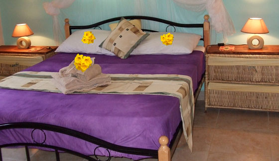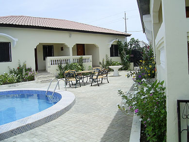 swimming pool surrounded by colourful gardens. Each apartment has private veranda, modern shower room, bedroom with powerful ceiling fan and a sitting room with T.V. showing news, sport & films. Pelican and Osprey have 4burner ovens and Oriole and Swift have microwave ovens plus all the necessary crockery and cutlery for self-catering. Air conditioning is available at an extra charge. |